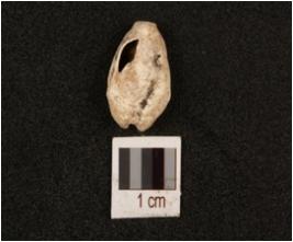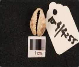 | Description / विवरण | A small shell cowrie, white in colour and rough surface. |