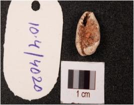 | Description / विवरण | A cowrie shell, natural marine object with natural groove and white in colour. |