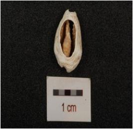 | Description / विवरण | Cowrie shell, natural grooves on surface damaged exterior and powdery surface. |