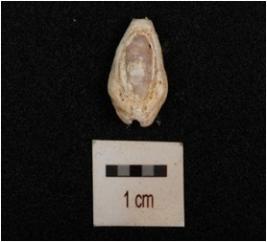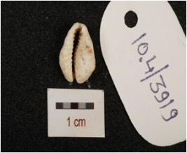 | Description / विवरण | An unmodified cowrie shell and natural grooves on the surface. |
