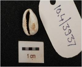 | Description / विवरण | Cowrie shell with natural grooves and powdery surface. |
