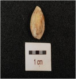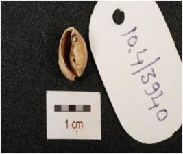 | Description / विवरण | Cowrie shell with natural grooves and weathered surface. |