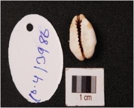 | Description / विवरण | A cowie shell, natural marine object with natural groove, powdery surface and natural white in colour. |