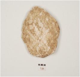 | Description / विवरण | Fragment of conch shell smooth fine natural lines on surface, concave interior, uneven edge and cream in colour, |