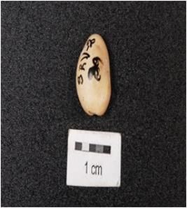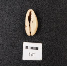 | Description / विवरण | A modified cowrie shell with natural groove and lines on the bottom. |