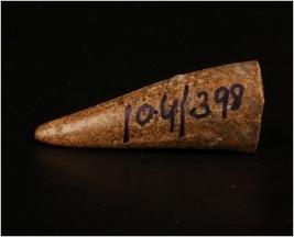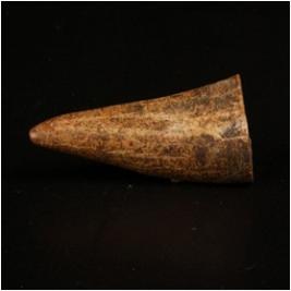 | Description / विवरण | Fragment of an antler with sharp tip, pointed conical shape, deep lines on smooth surface, lower portion of the object is flat. Well polished object. |
