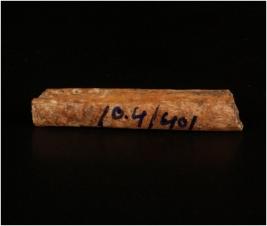 | Description / विवरण | A fragment of a bone, light brown in colour. Uneven in shape and smooth surface. Both ends are partly broken. |