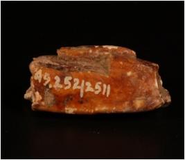 | Description / विवरण | Fragment of bone channels on surface. Painted with red colour. |