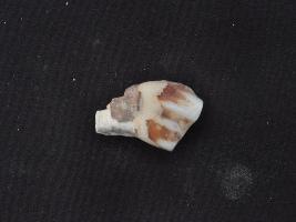 | Description / विवरण | Trench E, Length XXVI .57 to XXVII .97, Breadth 2.50 to 5.00 m, Depth 4.01 to 4.13 XXV, Stratum Layer 19 it s tooth made of bone. Uneven shaped and appearance is pale white. |