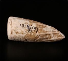 | Description / विवरण | Fragment of a conch shell with a fragile surface,pointed tip,round base and natural marks . |
