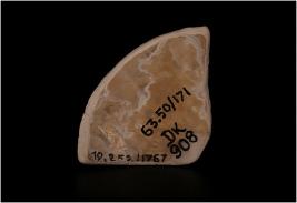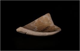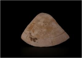 | Description / विवरण | Fragment of a conch shell the object is identified as a protector. Hemispherical in character. Upper side has liner designs. |