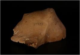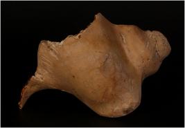 | Description / विवरण | Fragment of a shell ladle almost full of the portion is remained. The mouth part has round mouldings and a bulgy middle. Tail is sharp and slightly curved. |