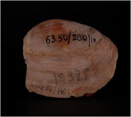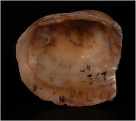 | Description / विवरण | Fragment of Shell muscle in oval shape, glossy surface on inside, eroded on top portion, smooth surface on both sides. |