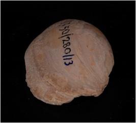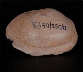 | Description / विवरण | Shell muscle in oval shape, smooth glossy surface eroded on both sides. Slightly broken aong the edges. Convex shaped top portion with natural lines. |