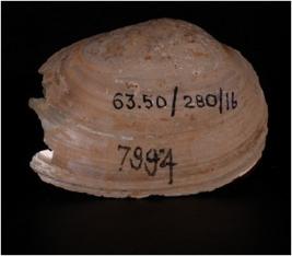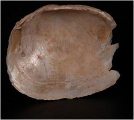 | Description / विवरण | Fragment of Shell muscle oval in shape. Smooth surface on both sides, but glossy from inside and convex shape on top portion. |