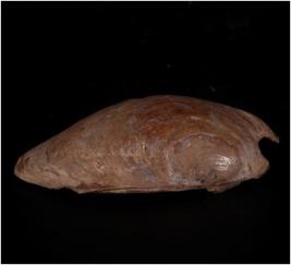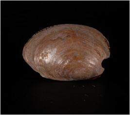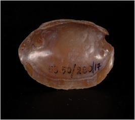 | Description / विवरण | An oval shaped Shell muscle with eroded surface on convex shape surface on top. Glossy surface on both sides. |