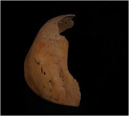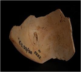 | Description / विवरण | Fragment of shell ladle, slightly large in size with concave interior and partly smooth surface and interior. |