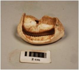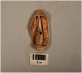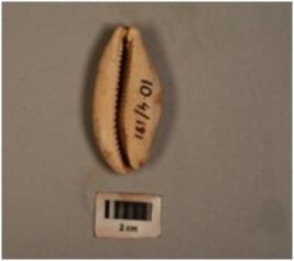 | Description / विवरण | Cowrie with dorsal part broken, ventral side intact, polished surface. |