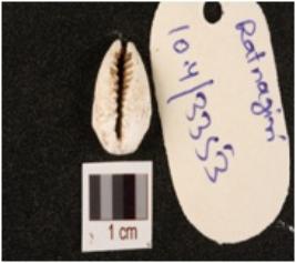 | Description / विवरण | A natural shell cowrie with cutting upper surface with a groove on one side and powdery surface. |