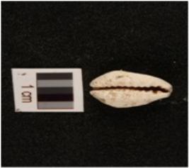 | Description / विवरण | A natural shell cowrie with a bulbous top and powdery white surface. |