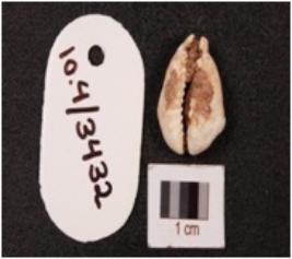 | Description / विवरण | Cowrie shell with a natural groove and powdery surface. |