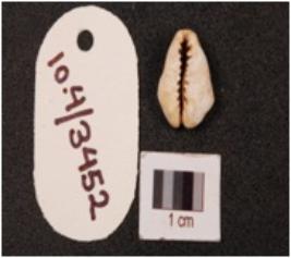 | Description / विवरण | Cowrie shell with a natural groove and powdery surface, natural white in colour. |