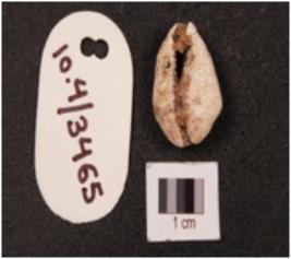 | Description / विवरण | Cowrie shell, it s a natural marine object with grooved line and powdery surface. |