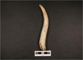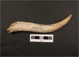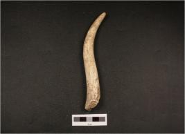 | Description / विवरण | A horn core, pointed end intact, modifced other end, smooth surface. |