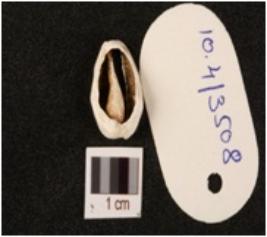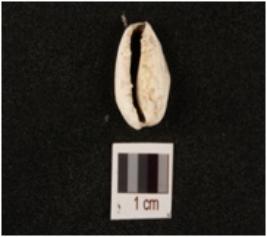 | Description / विवरण | Cowrie, natural marine shell, bulbous top and powdery surface. |