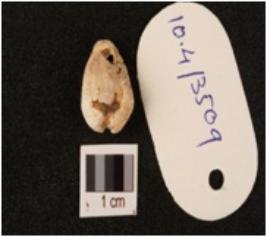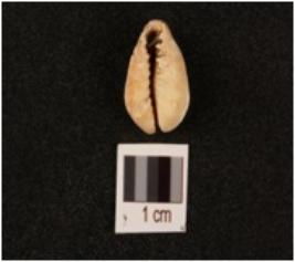 | Description / विवरण | Cowrie, natural marine shell, bulbous top surface and powdery surface. |