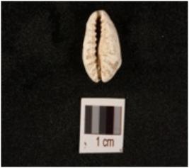 | Description / विवरण | Cowrie, natural marine shell, bulbous top and powdery surface. |