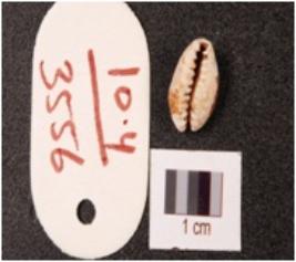 | Description / विवरण | Cowrie shell natural marine object with powdery surface and white in colour. |