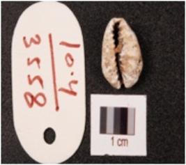 | Description / विवरण | Cowrie shell natural marine object with powdery surface and natural groove. |