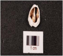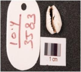 | Description / विवरण | Cowrie shell, natural marine object with powdery surface and natural groove. |