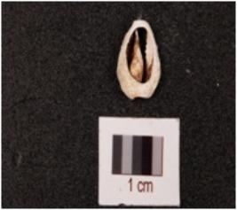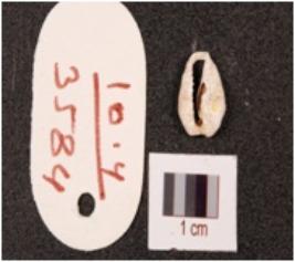 | Description / विवरण | Cowrie shell, natural marine object with powdery surface and natural groove. |