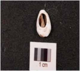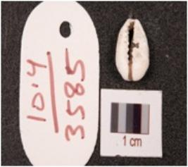 | Description / विवरण | Cowrie shell, natural marine object with powdery surface and natural groove. |