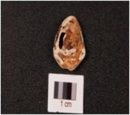 | Description / विवरण | A cowrie shell with partly damaged surface, natural groove at the base and off white in colour. |