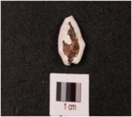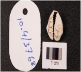 | Description / विवरण | A cowrie shell with bulbous top and natural groove at the base, powdery surface and white in colour. |