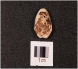 | Description / विवरण | A cowrie shell with bulbous top and natural groove at the base, partly damaged surface and cream in colour. |