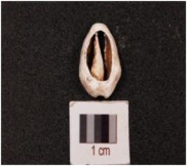 | Description / विवरण | Cowrie shell with damage surface, powdery surface, natural groove at the base and cream colour. |