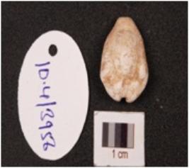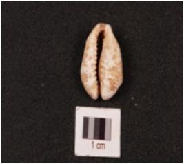 | Description / विवरण | A cowrie shell, natural marine object with groove on surface powdery surface and natural white in colour. |