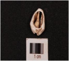 | Description / विवरण | A shell cowrie, natural marine object with groove on the surface, white in colour and exterior surface is broken. |