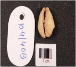 | Description / विवरण | A cowrie shell, natural marine object with natural groove and off white in colour. |