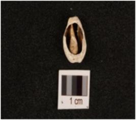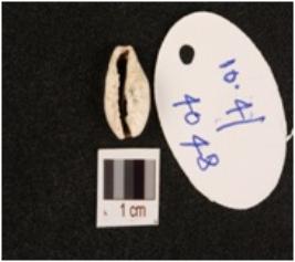 | Description / विवरण | A cowrie shell, natural marine object, natural white colour, powdered surface and broken exterior surface. |