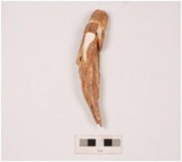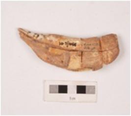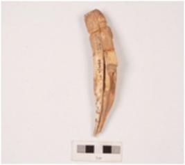 | Description / विवरण | Fragment of bone uneven shape, polished surface and incise line on the top. |