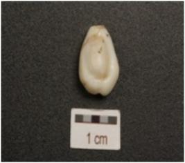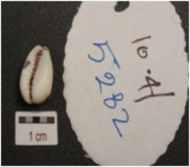 | Description / विवरण | A small cowrie shell, shiny surface and upper side. |
