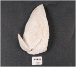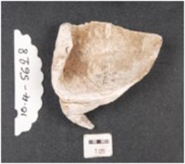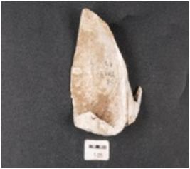 | Description / विवरण | Fragment of a conch shell protector with weathered surface. |