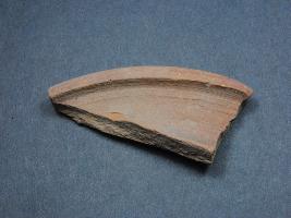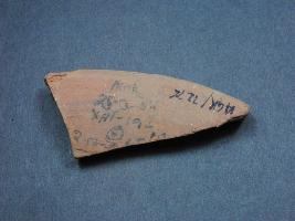 | Description / विवरण | It is a broken rim fragment of a pot made of terracotta was found in Agroha trench no. XA19, layer no.22. It is well fired and color is red. It has some cut marks and flaking on its surface. It is wheel made pottery. |