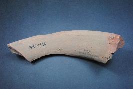 | Description / विवरण | It is a broken rim fragment of a pot made of terracotta was found in Agroha trench no. WAP13, layer no.13. It is well fired and color is red. It has some cut marks and flaking on its surface. It is wheel made pottery. |