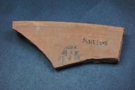 | Description / विवरण | It is a broken rim fragment of a pot made of terracotta was found in Banawali trench no. XC8, layer no.2. It is well fired and color is red. It has some cut marks and flaking on its surface. It is wheel made pottery. |
